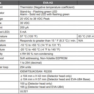 – Models EVA-H2-H is an attractivelystyled, low profile heat detector for use with the Fire Alarm Control Panel of NFU-7000 series. These heat detectors are intelligent (addressable) detectors that have the ability for each detector address to provide exact detector locations. The detector sensitivity is continually monitored and reported to the panel.